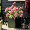 Cet hortensia possède des inflorescences de bonne taille, rose vif, apparaissant au début de l'été et portées par des tiges fortes. Une remontée apparaît également en automne.