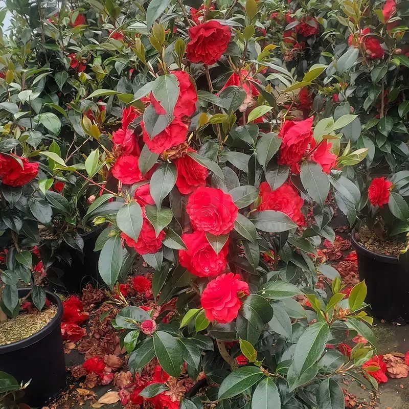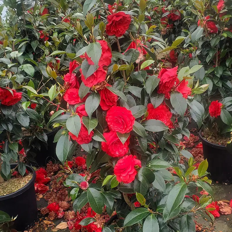 - Glossy dark green evergreen foliage