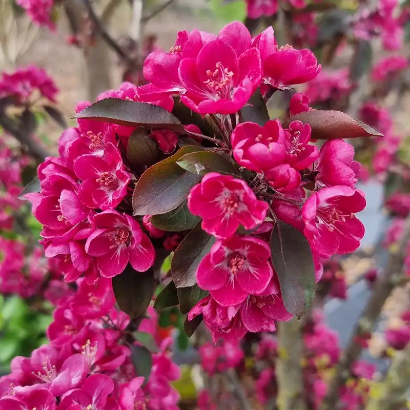 - Spectacular intense red flowering in bud, evolving to carmine pink